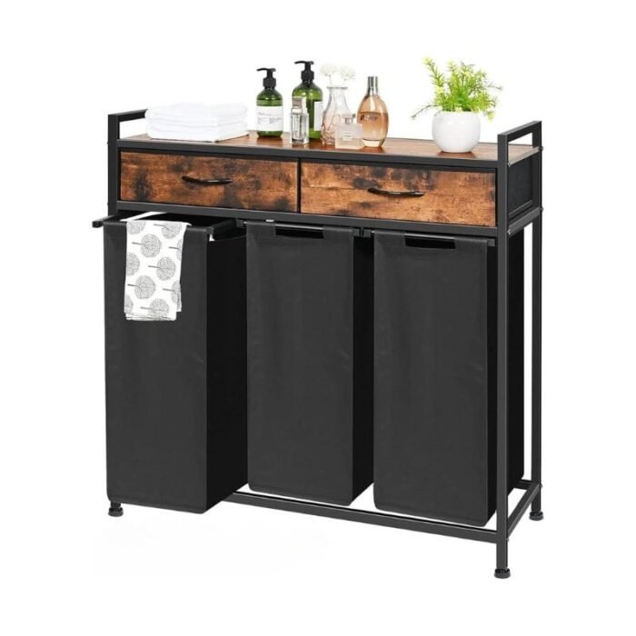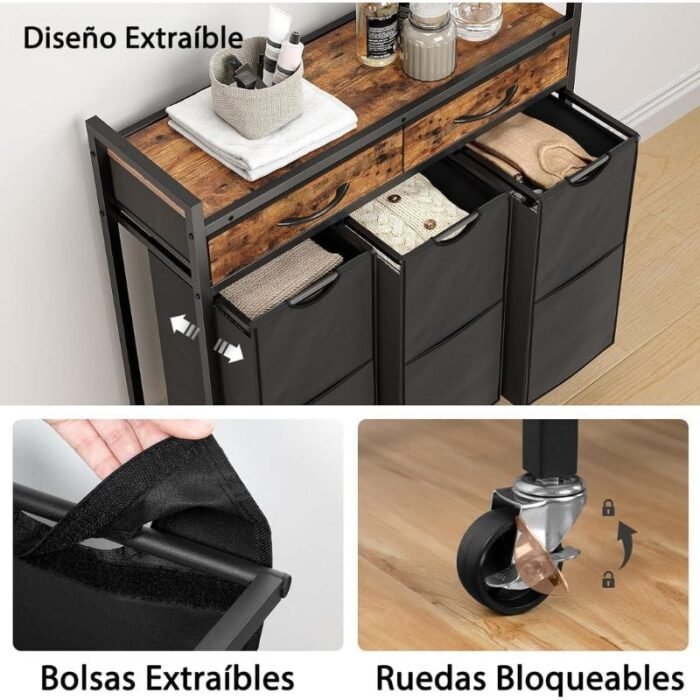 Cesto de Ropa Sucia con 3 Secciones y 2 Cajones, Organizador de Ropa
