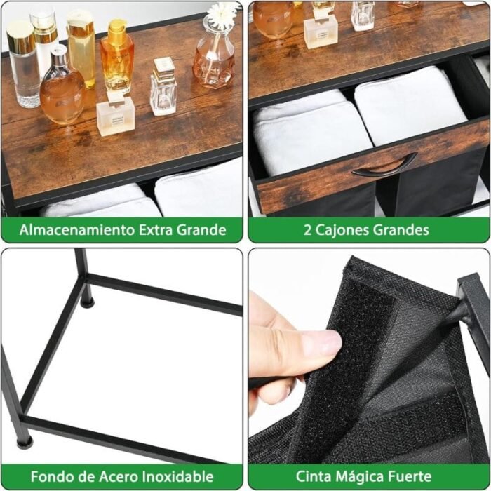 - Materiales de Alta Calidad: El marco del carrito clasificador de ropa está hecho de acero de alta resistencia con una superficie antioxidante. Cada cesto de ropa está hecho de tela Oxford engrosada, con un revestimiento impermeable. La superficie superior está hecha de un material compuesto de alta calidad que simula la madera, con un grosor de 15 mm.
