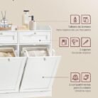 - Mueble de baño y cesta en uno: Además de una encimera y 2 cajones, que proporcionan un fácil acceso a los artículos, este mueble de baño también ofrece 2 cestos de lavandería para satisfacer tus necesidades de almacenamiento de lavandería