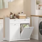 Con nuestro armario de baño con cesto, dispondrás de un estante y 2 cajones para acceder fácilmente a tus artículos, así como de espacio para guardar la colada, lo que satisfará todas tus necesidades.