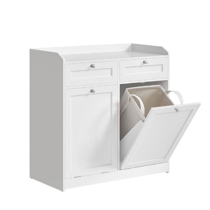 - Robusto y resistente: Los compartimentos de lavandería están reforzados con paneles trapezoidales y cuenta con bisagras de metal, lo que asegura un soporte firme para la ropa y una larga durabilidad