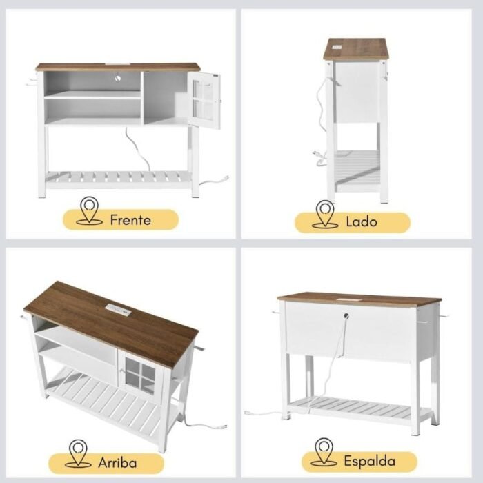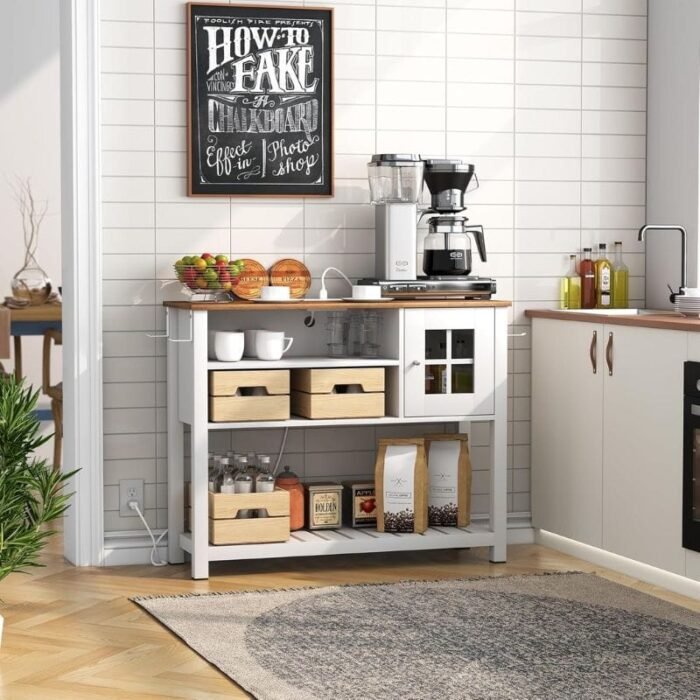 - 【Amplio Espacio de Almacenamiento】 Con gabinetes con puerta y 3 estantes grandes abiertos, el gabinete tipo buffet ofrece suficiente espacio abierto y cerrado para exhibir y organizar sus artículos de cocina, como granos de café, vajilla, microondas, tostadora o cafeteras.