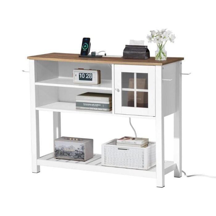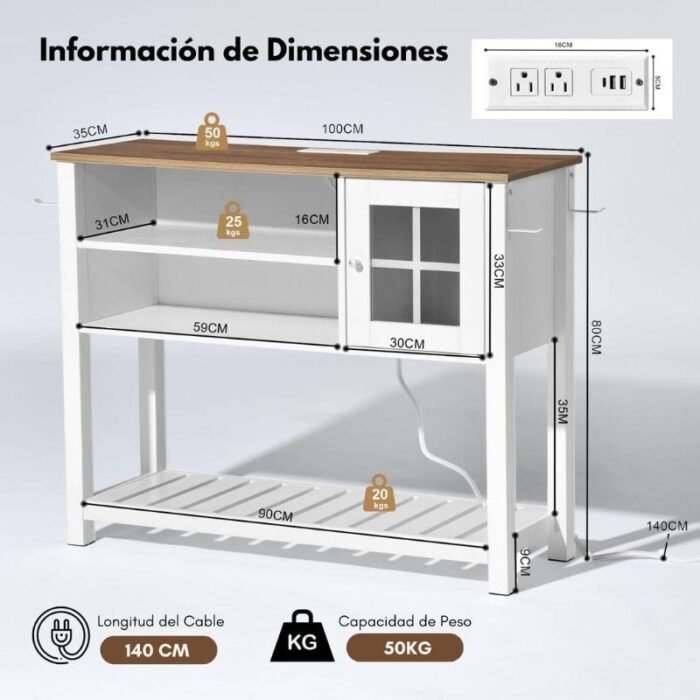 - 【Tomas de Corriente y Puerto USB】Nuestra mesa de consola cuenta con una toma de corriente incorporada para una instalación sin complicaciones. Conecte cafeteras, dispositivos y más sin problemas, combinando elegancia y practicidad para una experiencia sofisticada.
