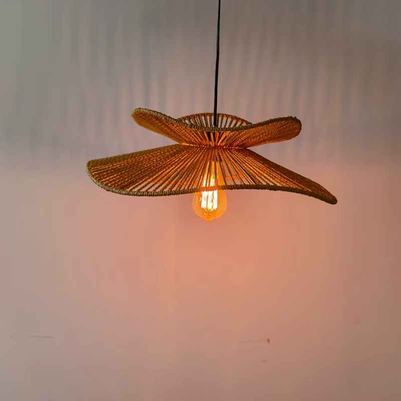 Lámpara colgante tejida a mano, candelabro de ratán Retro,