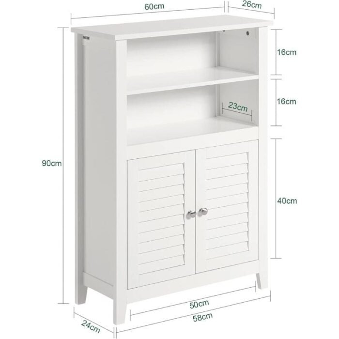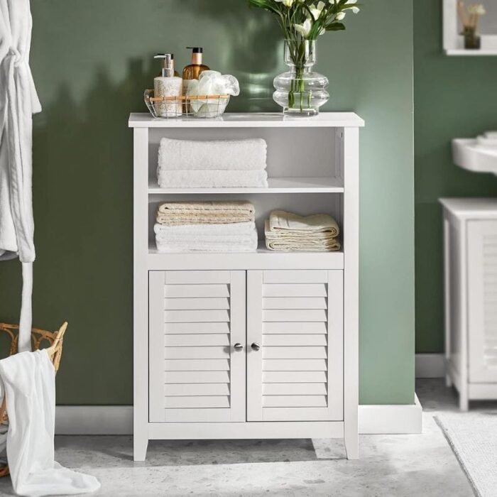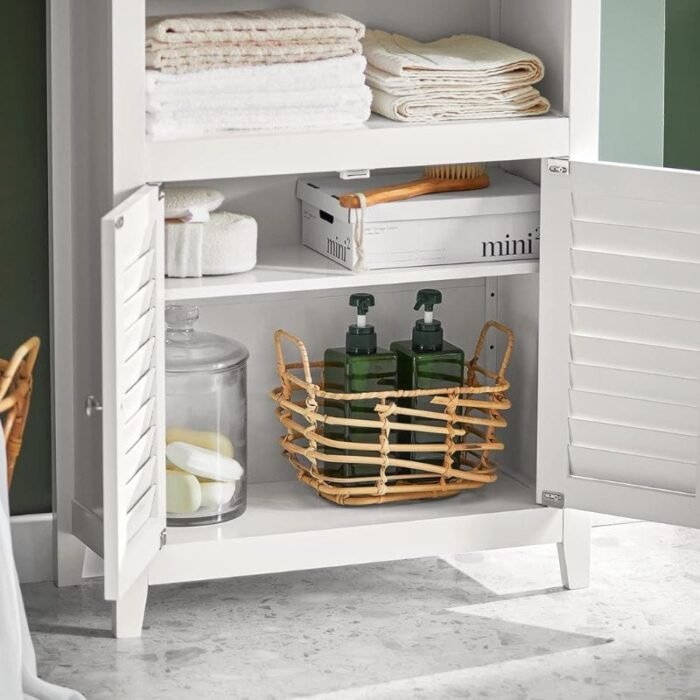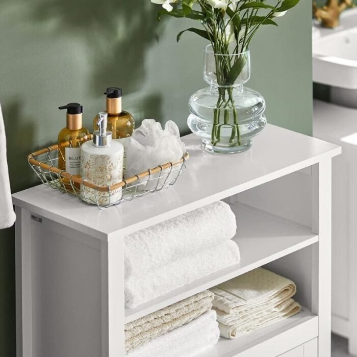 • Se puede utilizar como armario de suelo para baño para ordenar los artículos de aseo y los artículos de ducha. Además, se puede servir como armario de almacenaje para dormitorio, cocina o salón para ayudarle a ordenar y almacenar las necesidades diarias.