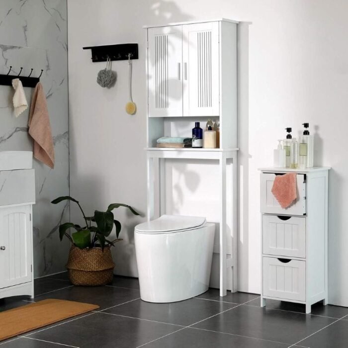 La solución definitiva para el cuarto de baño: ¿Se ha quedado sin espacio en el cuarto de baño? ¿Cansado de ver un mar de artículos de tocador esparcidos por la encimera o papel higiénico apilado en una esquina? Este armario de almacenamiento sobre el inodoro de 20 X 60 X 173 cm es la solución definitiva para añadir más espacio de almacenamiento y utilizar una zona que de otro modo no utilizaría.
