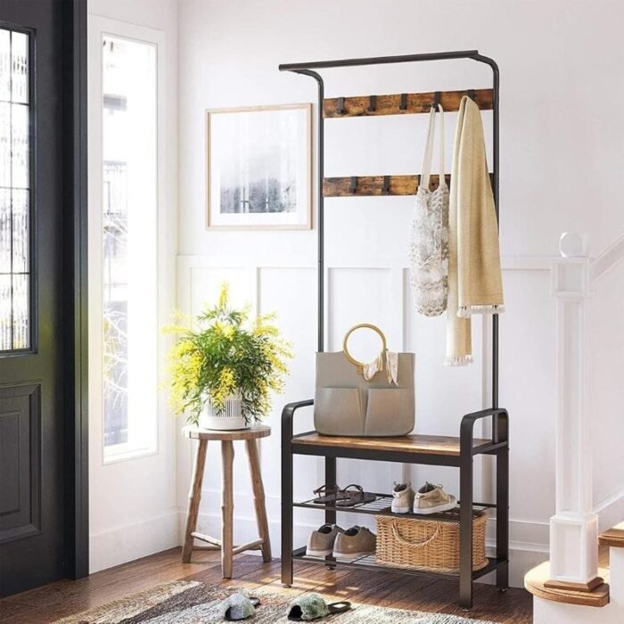 Perchero Zapatero con Banca Recibidor y 9 Ganchos extraíbles